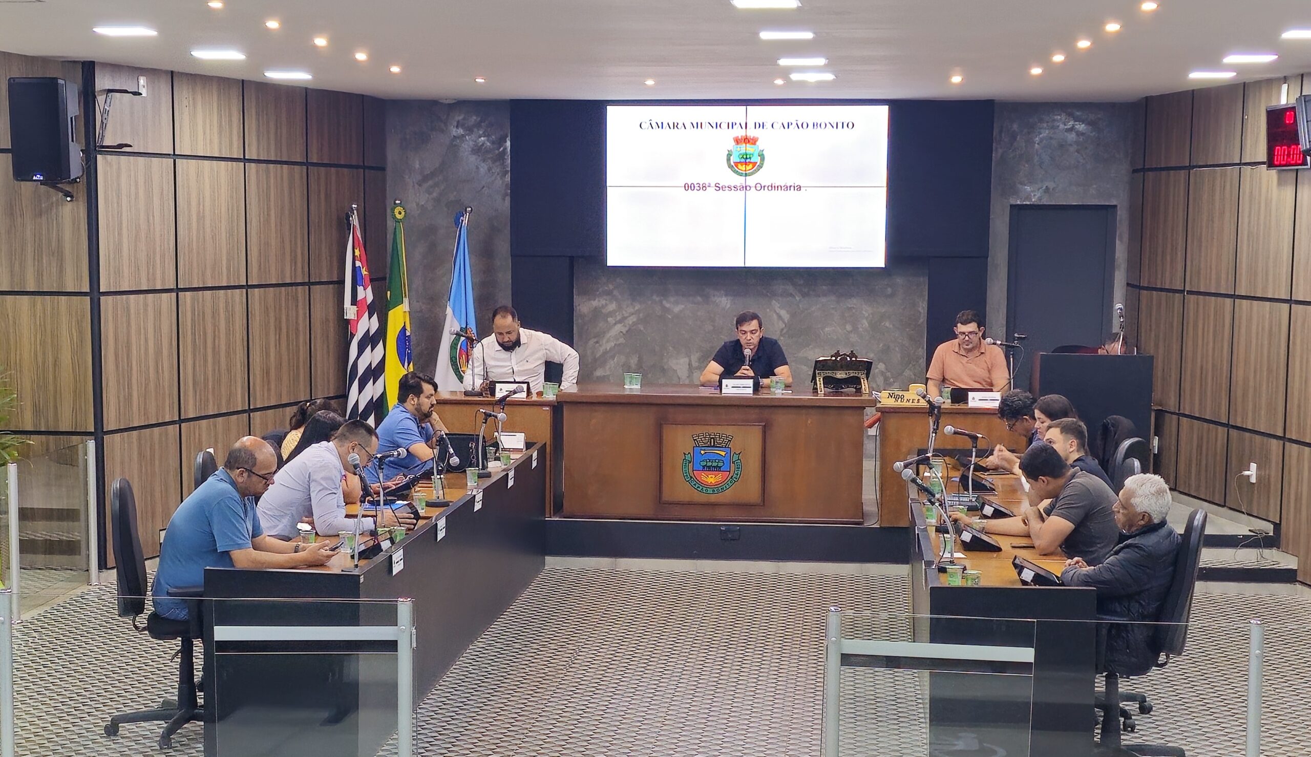 No início da 37ª Sessão Ordinária, realizada em 27 de outubro, foram apresentadas três Indicações, que foram encaminhadas ao Executivo pela Presidência. Em seguida, na Ordem do Dia, foi votado e aprovado por todos os Vereadores o Projeto de Lei do Executivo 0116-2025, de autoria do Prefeito Municipal, para
