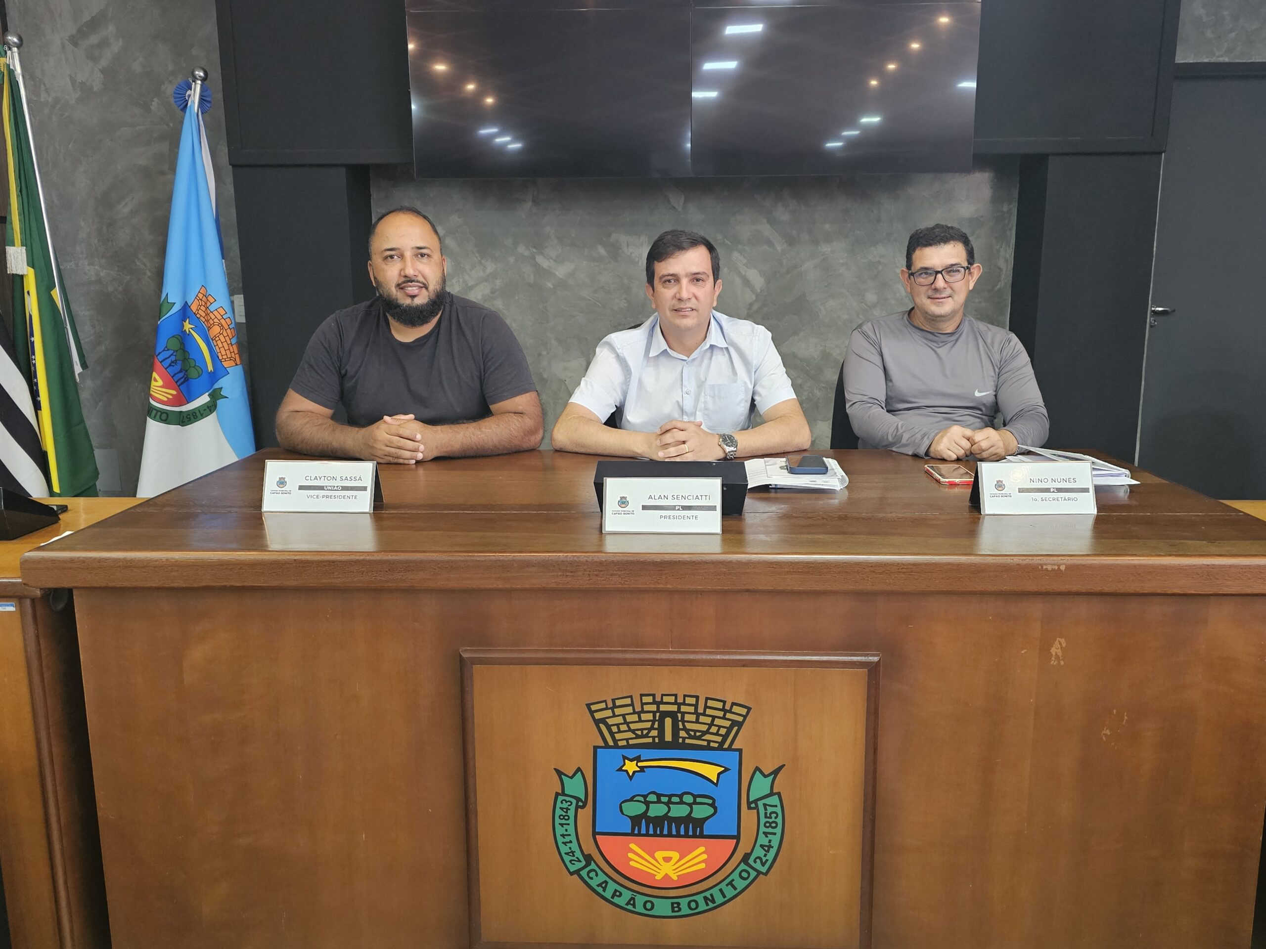 Foi realizada, na manhã da segunda-feira 26 de janeiro, a Audiência Pública de Prestação de Contas dos Atos do Poder Legislativo, referentes ao 2º semestre de 2025. O Presidente da Câmara, Alan Senciatti, acompanhado dos membros da Mesa Diretora – Clayton Sassá (Vice-Presidente) e Nino Nunes (1º Secretário), fez a