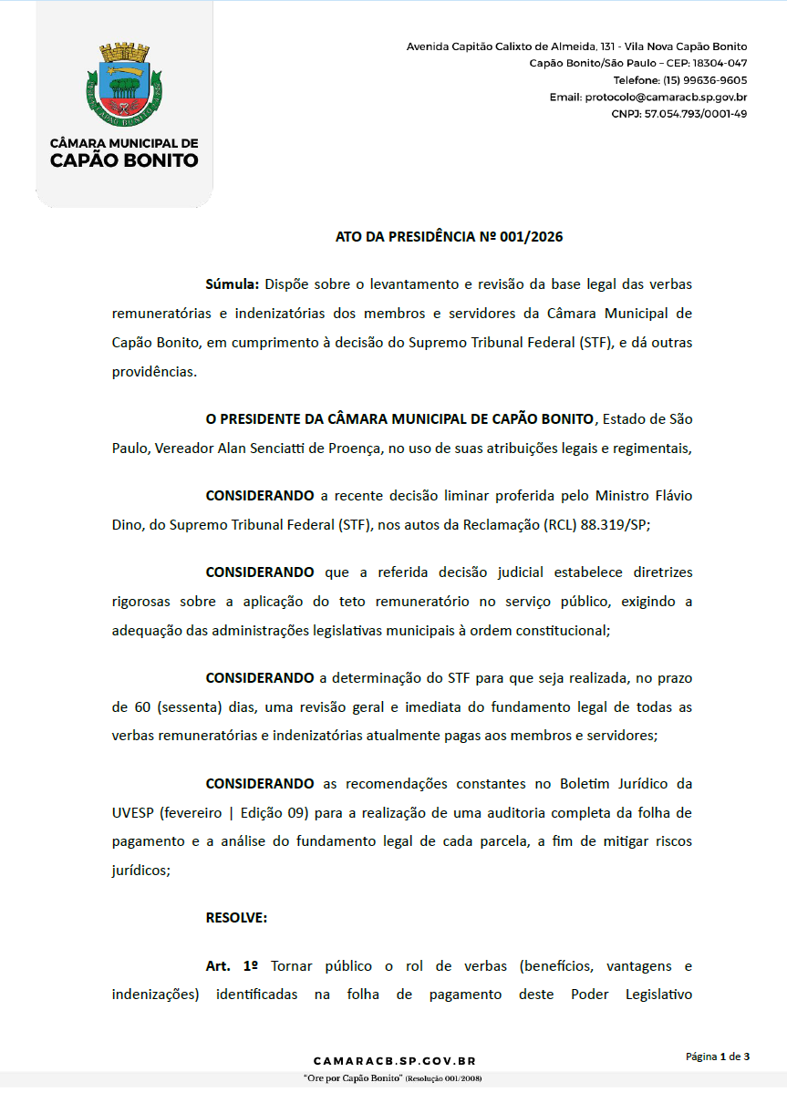 ATO DA PRESIDÊNCIA 001/2026