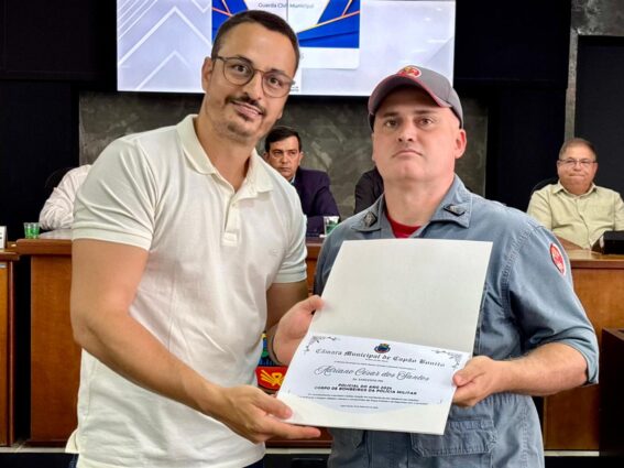 Finalizando os discursos, o Presidente da Câmara, Alan Senciatti, também parabenizou o Vereador Rafael do Abner e enalteceu a coragem, a honra, dedicação e o comprometimento com que os profissionais que protegem nossa cidade desempenham suas funções, recebendo, mesmo que anonimamente, a gratidão da população.