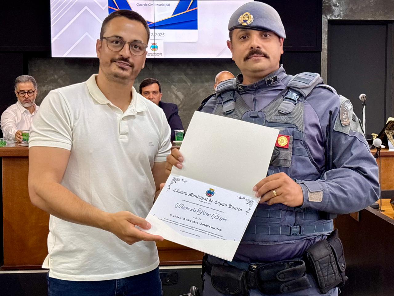 Os homenageados foram indicados pelas próprias corporações, a partir de critérios internos, em reconhecimento a atuações de destaque em ocorrências de alta relevância aos cidadãos e ao seu comprometimento em favor do bem-estar da população capão-bonitense e da segurança da nossa comunidade.