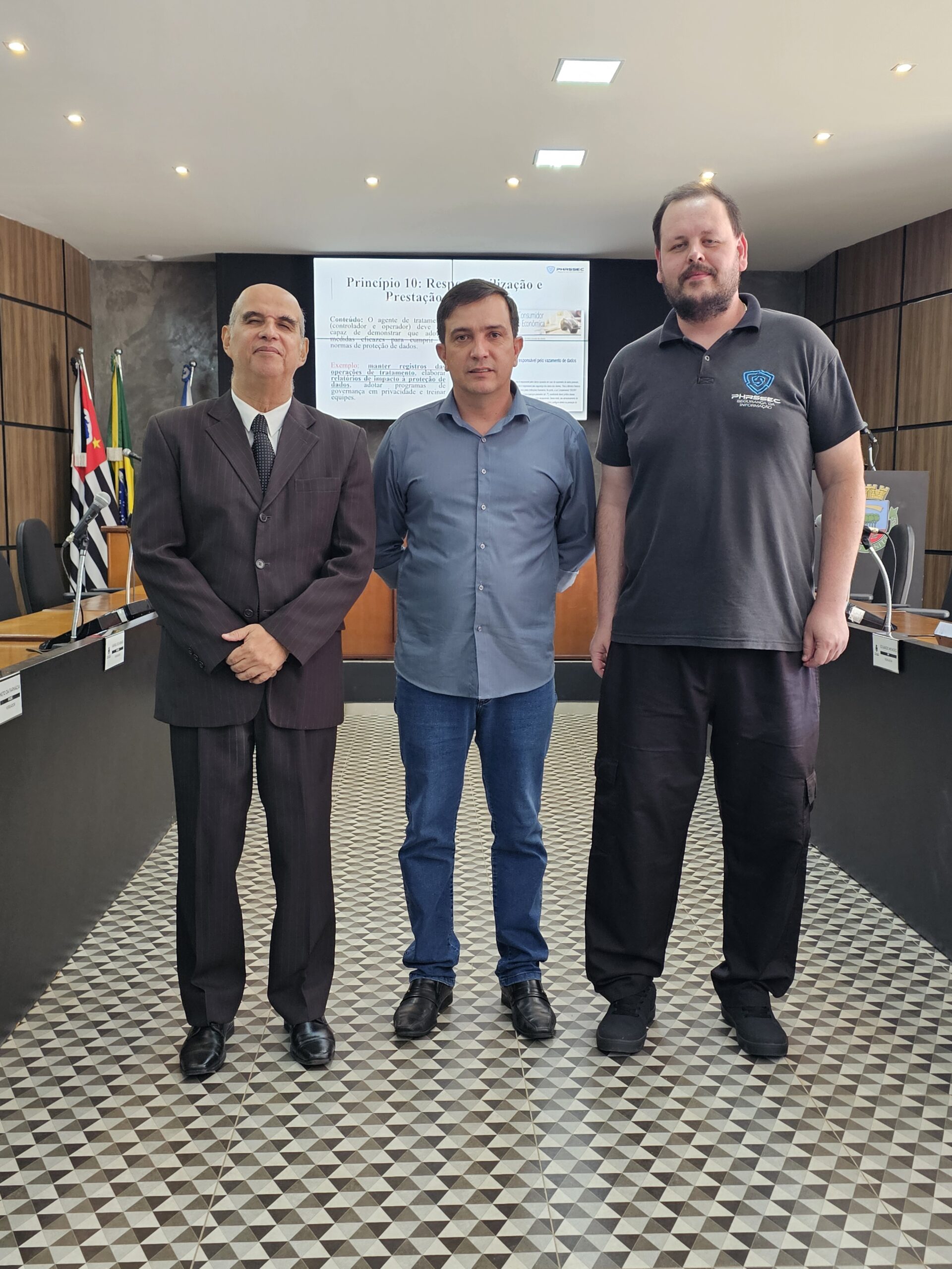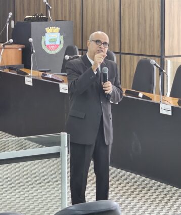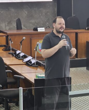 O Presidente de Câmara, Alan Senciatti, deu as boas-vindas aos participantes e agradeceu as presenças, especialmente daqueles que vieram dos municípios vizinhos. Destacou a relevância do tema tanto para as Câmaras Municipais como para a atuação do vereador, pois implica o cuidado com a privacidade, segurança e proteção dos dados pessoais aos quais se tem acesso no cumprimento das atividades.