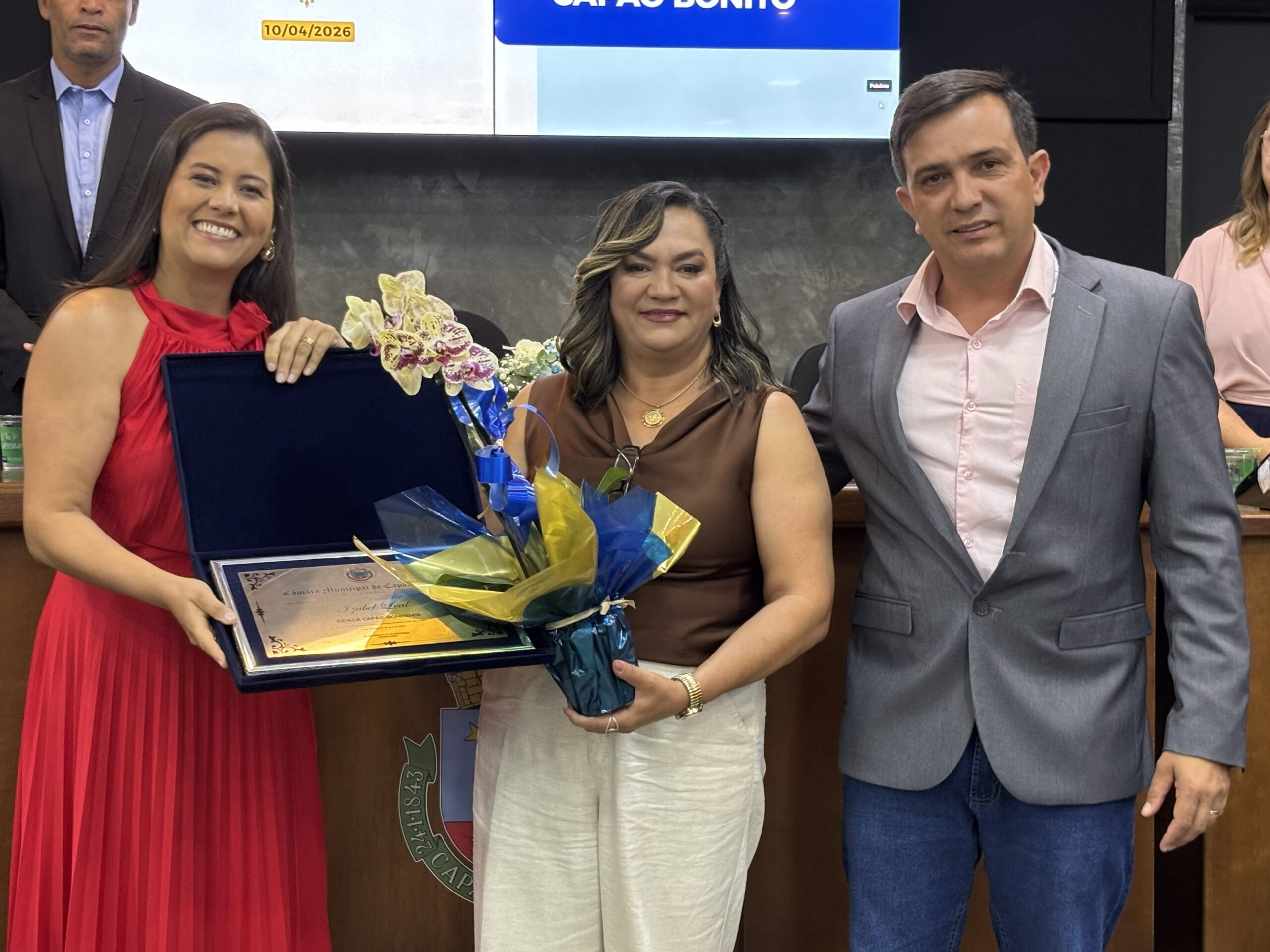 O Título de Cidadã Capão-Bonitense para Izabel Leal foi outorgado no Decreto Legislativo 005/2025, de autoria da Vereadora Camila Camargo. Izabel, profissional da área da saúde de reconhecida competência e uma referência em nossa cidade por sua atuação no Conselho Tutelar, recebeu homenagens do seu filho Marcos Antônio Leal e da amiga Monique Marques.