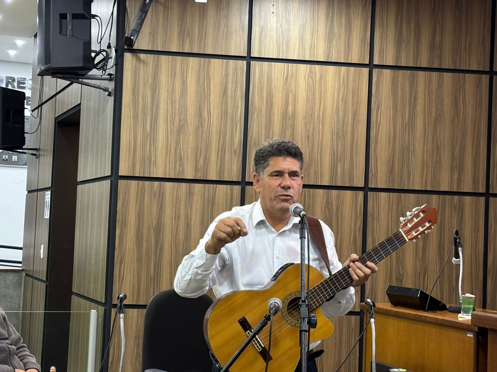 Ao final da solenidade, o Vereador Célio de Melo fez uma apresentação especial às homenageadas, cantando a música “Raridade”.