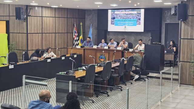 A Audiência Pública de ontem, realizada pela Câmara Municipal, foi conduzida pelo Presidente Alan Senciatti e pela Comissão de Finanças e Orçamento, composta pelos Vereadores Nino Nunes (Presidente), Neto Tallarico (Relator) e Rafael do Abner. Também fizeram parte da Mesa, a Secretária Municipal de Administração e Finanças, Carla Jeanice e o Secretário de Educação e Cultura, Lucas Barros. Estiveram presentes, ainda: as Vereadoras Camila Camargo e Silvia Cecap, o Diretor de Planejamento da Educação, Adão Martins e a Coordenadora da Divisão de Contabilidade, Renilda Proença.
